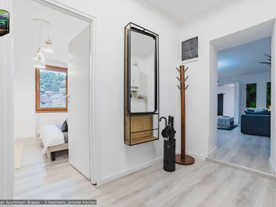 The apartment is located in Brasov’s old Schei borough, one of the most important romanian cultural sites; cobblestone lined streets, red roofed 17th century old houses and mountain sloped gardens, harmoniously mix history and nature.