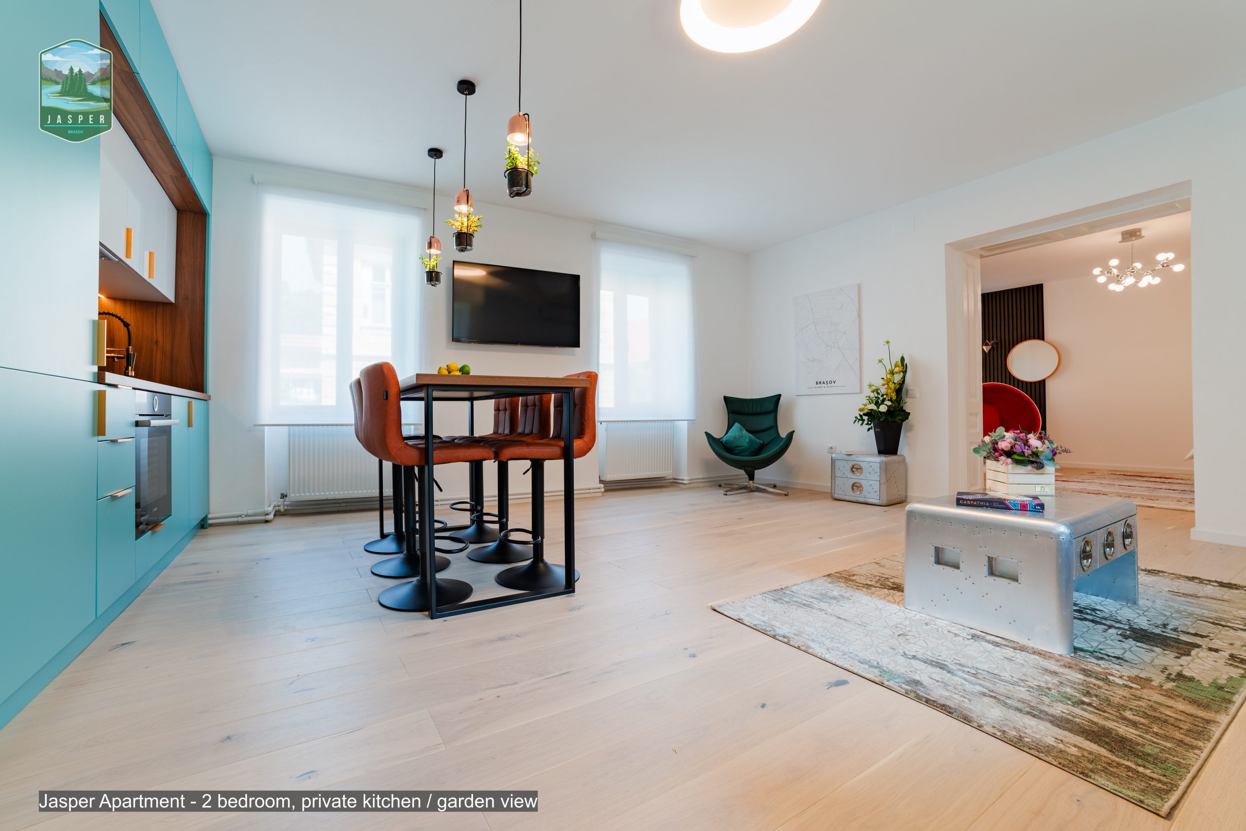 Our most recent addition to the Schei collection (July 2023), following the design language and layout of Denali, Jasper Apartment combines modern design in a luxurious, spacious setting. This apartment features 3 rooms, in old town Brasov – 20 yards from Unirii Plaza, conveniently within walking distance of the most important tourist sites: The Black Church, The First Romanian School, The Schei Gate, The Ecaterina Gate, The Council Plaza, Republicii Street, The White Tower, The Rope Street.1Free